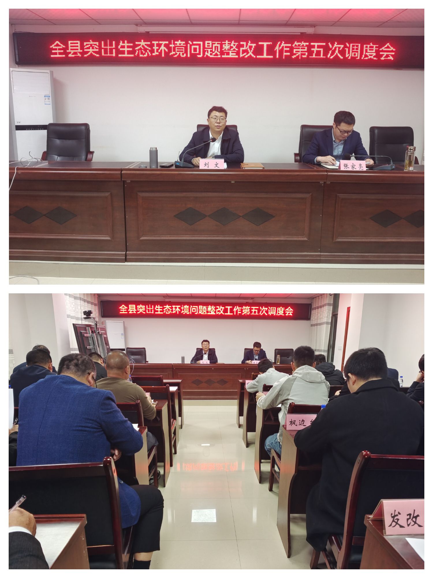 收听收看全市突出生态环境问题整改工作第五次视频调度会后,我县紧接着召开全县突出生态环境问题整改工作调度会,各乡镇区、各有关部门负责同志参加会议,会上,刘文副县长就历年督察反弹问题、突出生态环境问题及举一反三排查未整改到位问题进行逐一过点,要求问题整改牵头单位迅速行动,加强调度,限期整改到位。